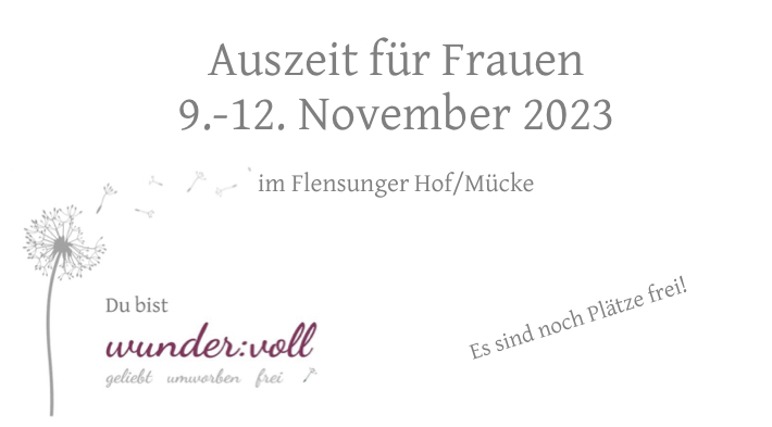 Es sind noch Plätze frei auf der wunder:voll-Auszeit für Frauen! Vom 9. – 12. November findet sie im Flensunger Hof in Mücke statt. Hier ein paar Stimmen von Teilnehmerinnen des vergangenen Jahres: